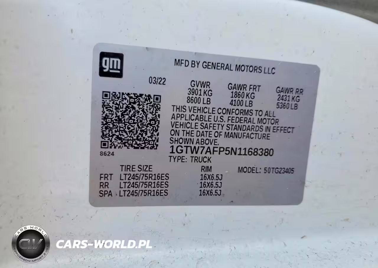Copart Nr: C-47293516 VIN: 1GTW7AFP5N1168380 Port: Elizabeth, NJ