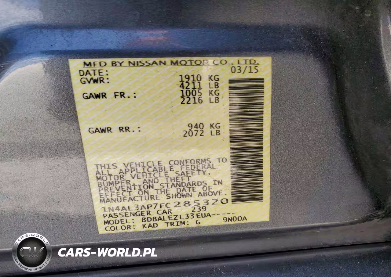 Copart Nr: C-47299536 VIN: 1N4AL3AP7FC285320 Port: Savannah, GA