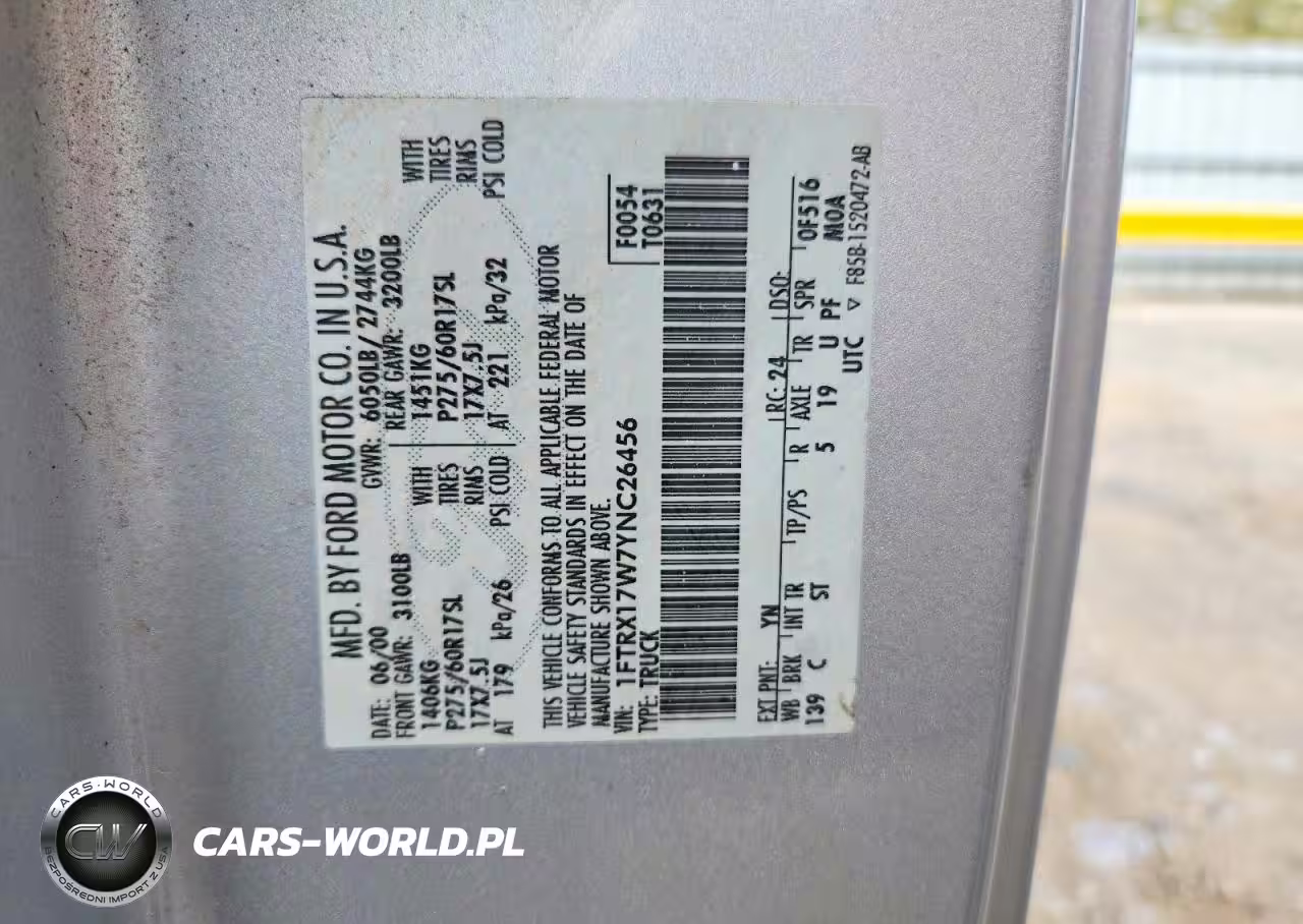 Copart Nr: C-47306776 VIN: 1FTRX17W7YNC26456 Port: Savannah, GA