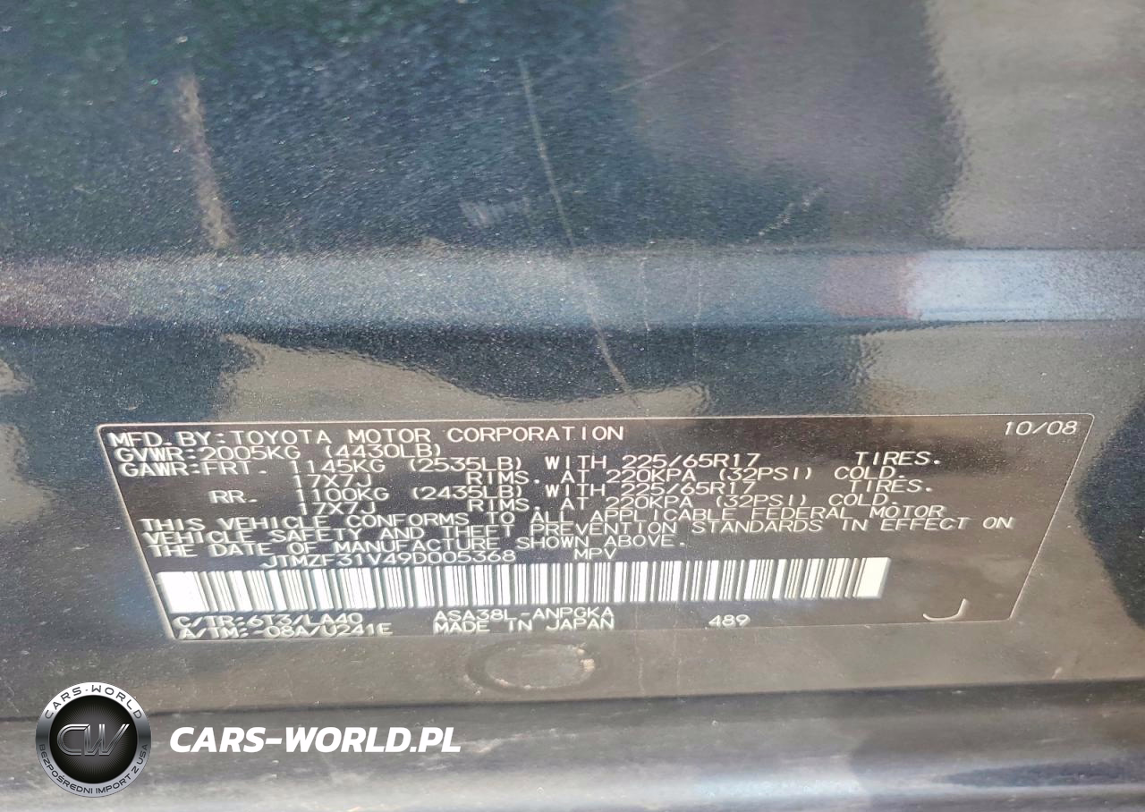 Copart Nr: C-47307966 VIN: JTMZF31V49D005368 Port: Houston, TX