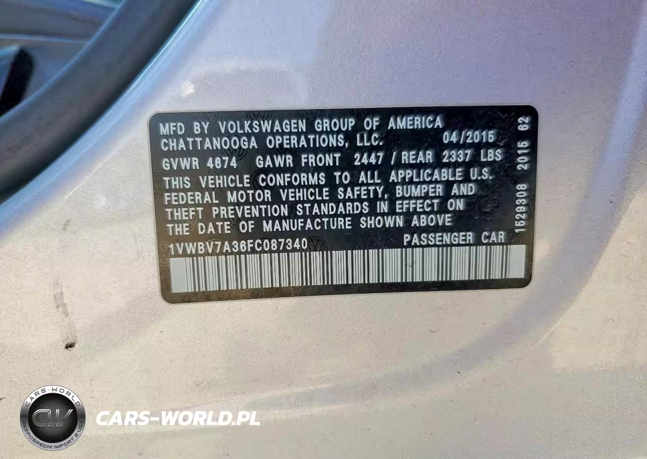 Copart Nr: C-47318026 VIN: 1VWBV7A36FC087340 Port: Houston, TX