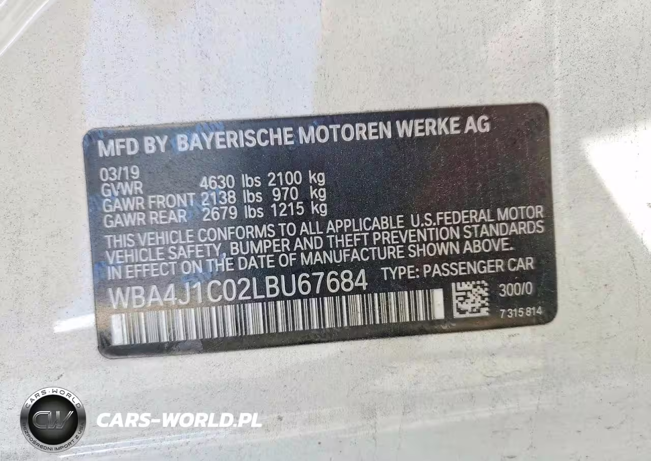 Copart Nr: C-47318376 VIN: WBA4J1C02LBU67684 Port: Los Angeles, CA