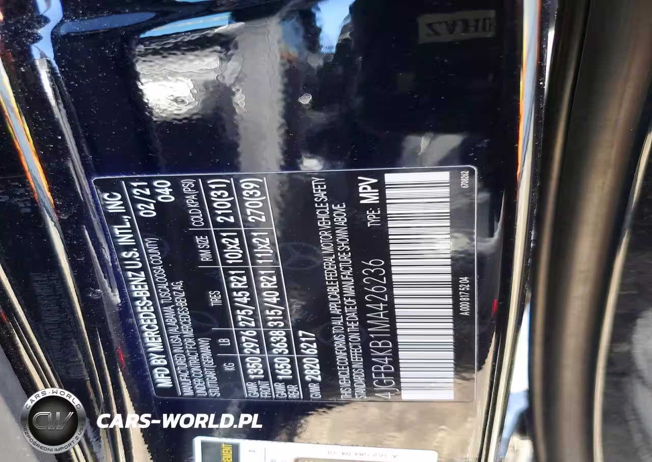 Copart Nr: C-47320016 VIN: 4JGFB4KB1MA426236 Port: Elizabeth, NJ