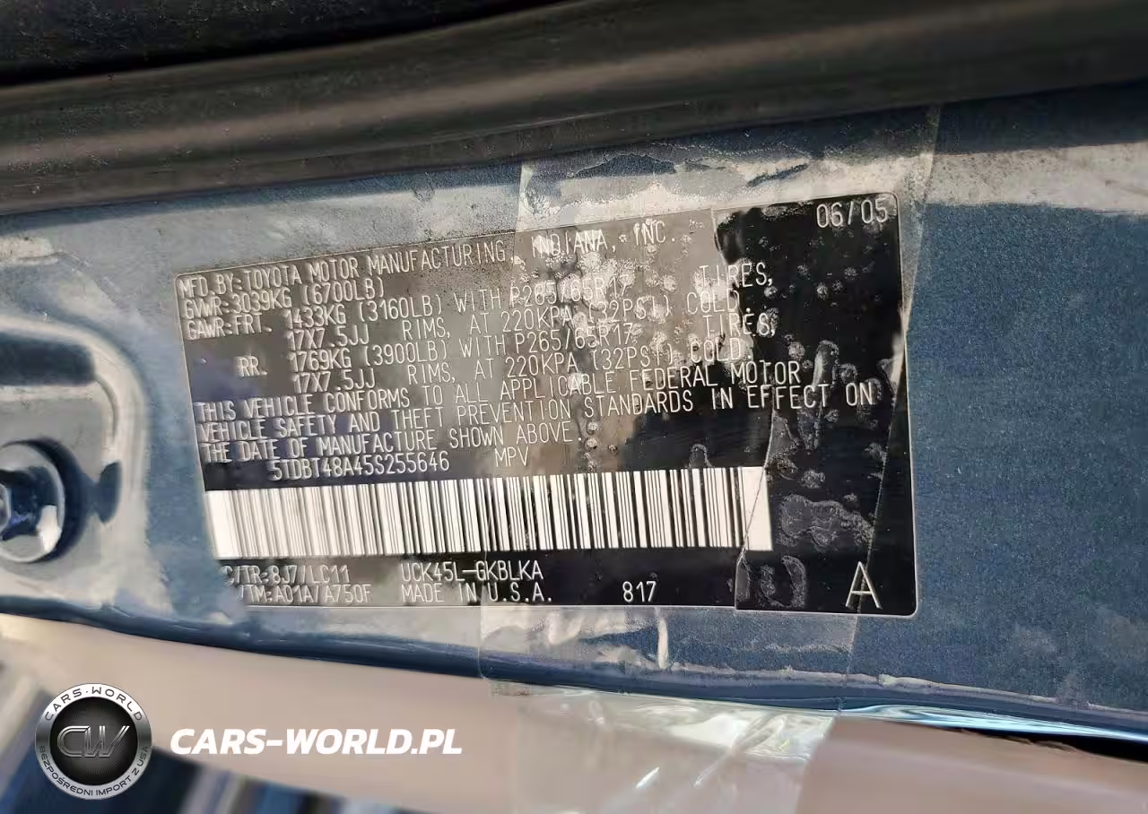 Copart Nr: C-47322456 VIN: 5TDBT48A45S255646 Port: Los Angeles, CA