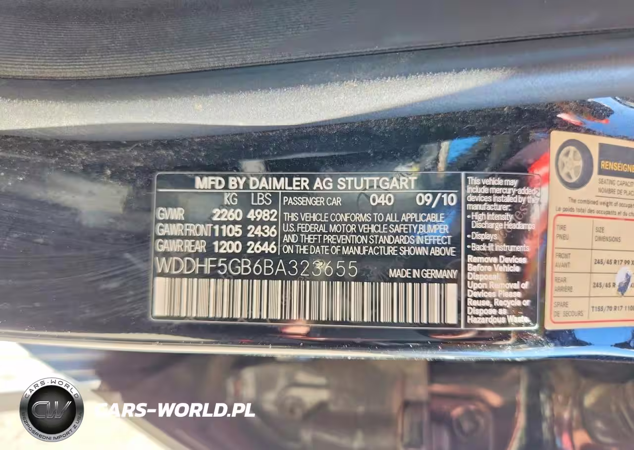 Copart Nr: C-47326056 VIN: WDDHF5GB6BA323655 Port: Los Angeles, CA