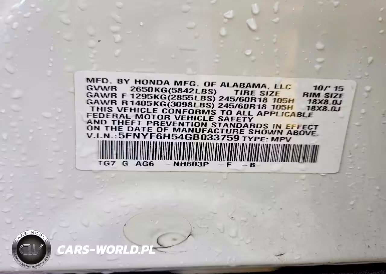 Copart Nr: C-47337386 VIN: 5FNYF6H54GB033759 Port: Indianapolis, IN