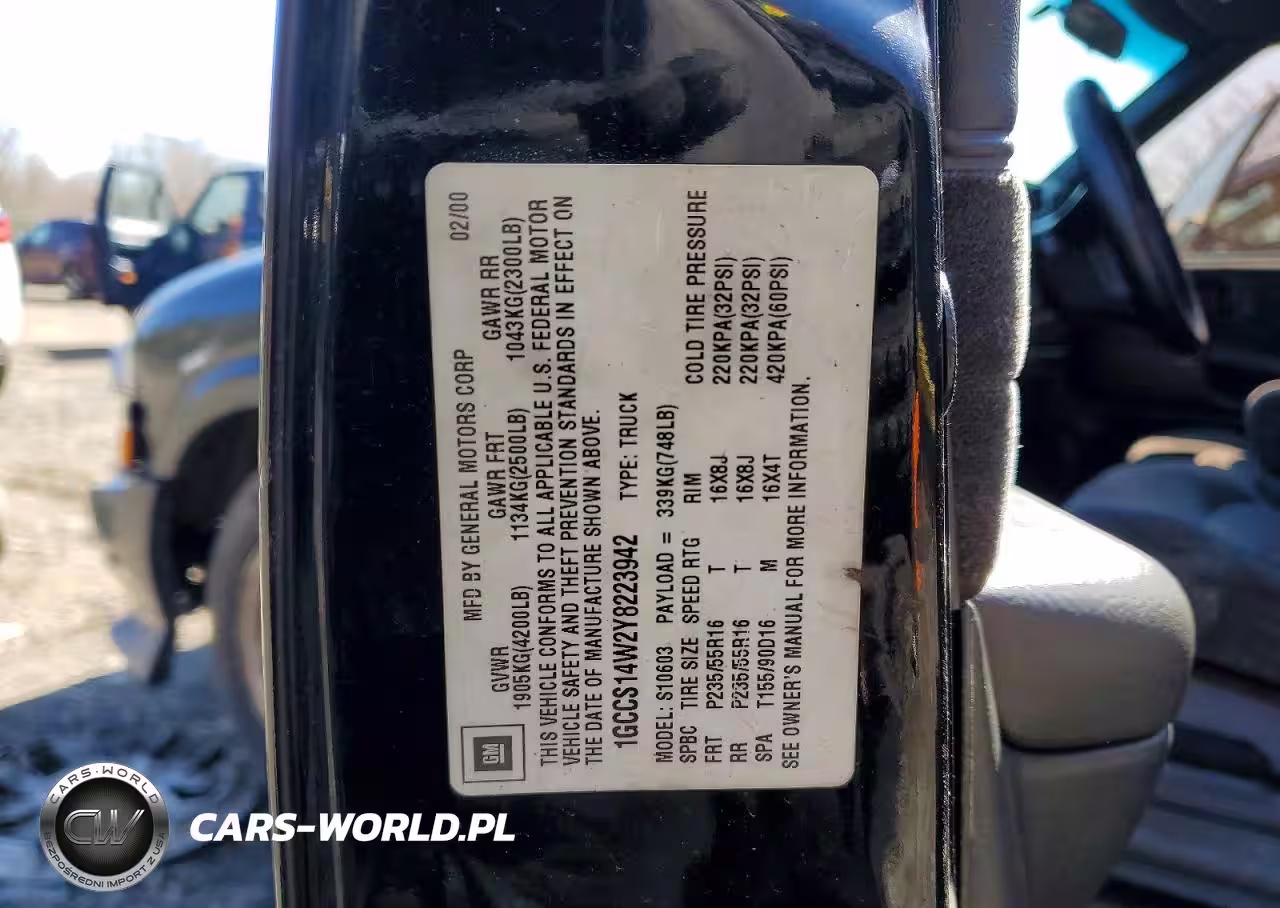 Copart Nr: C-47343726 VIN: 1GCCS14W2Y8223942 Port: Elizabeth, NJ