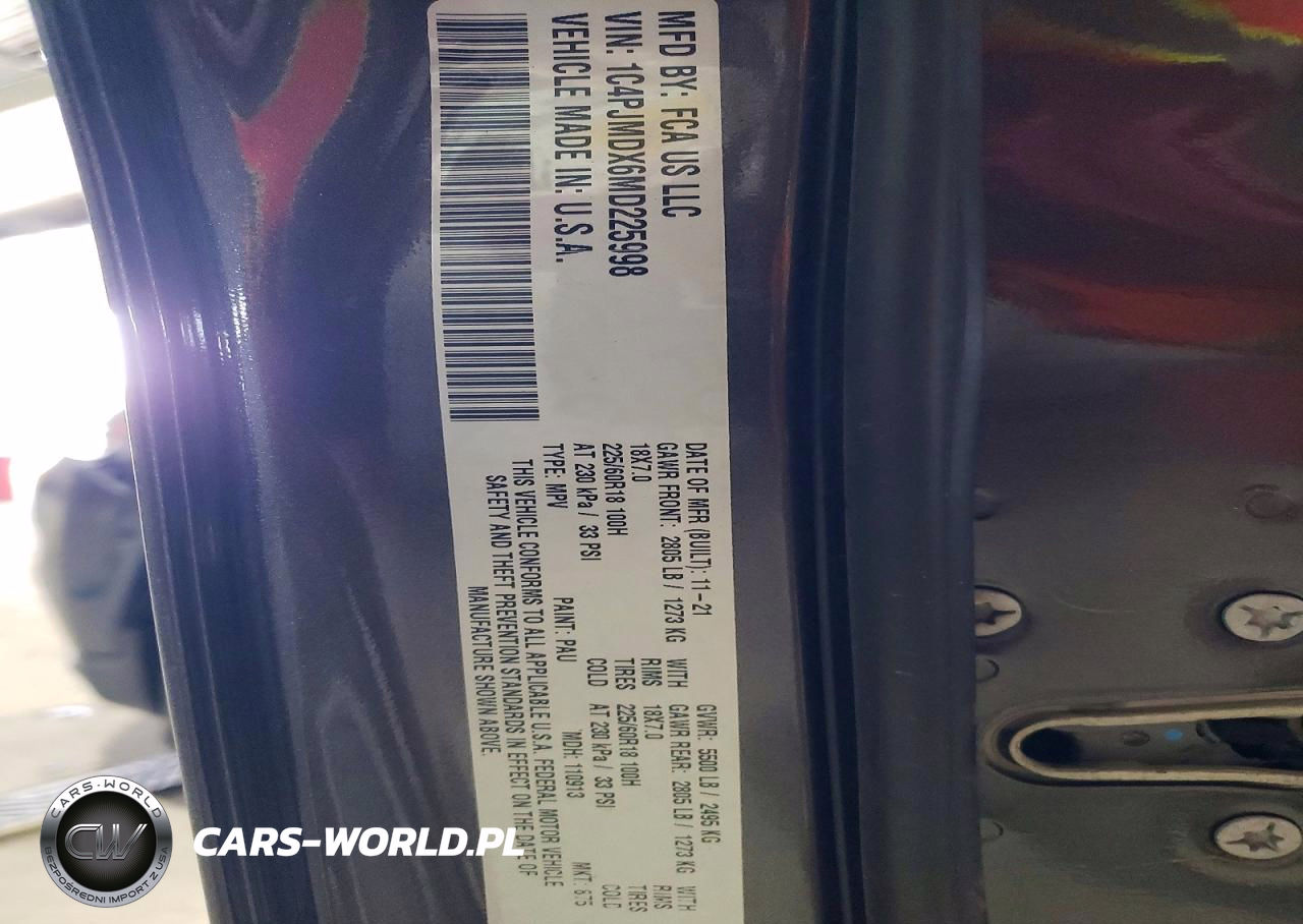 Copart Nr: C-47345026 VIN: 1C4PJMDX6MD225998 Port: Elizabeth, NJ
