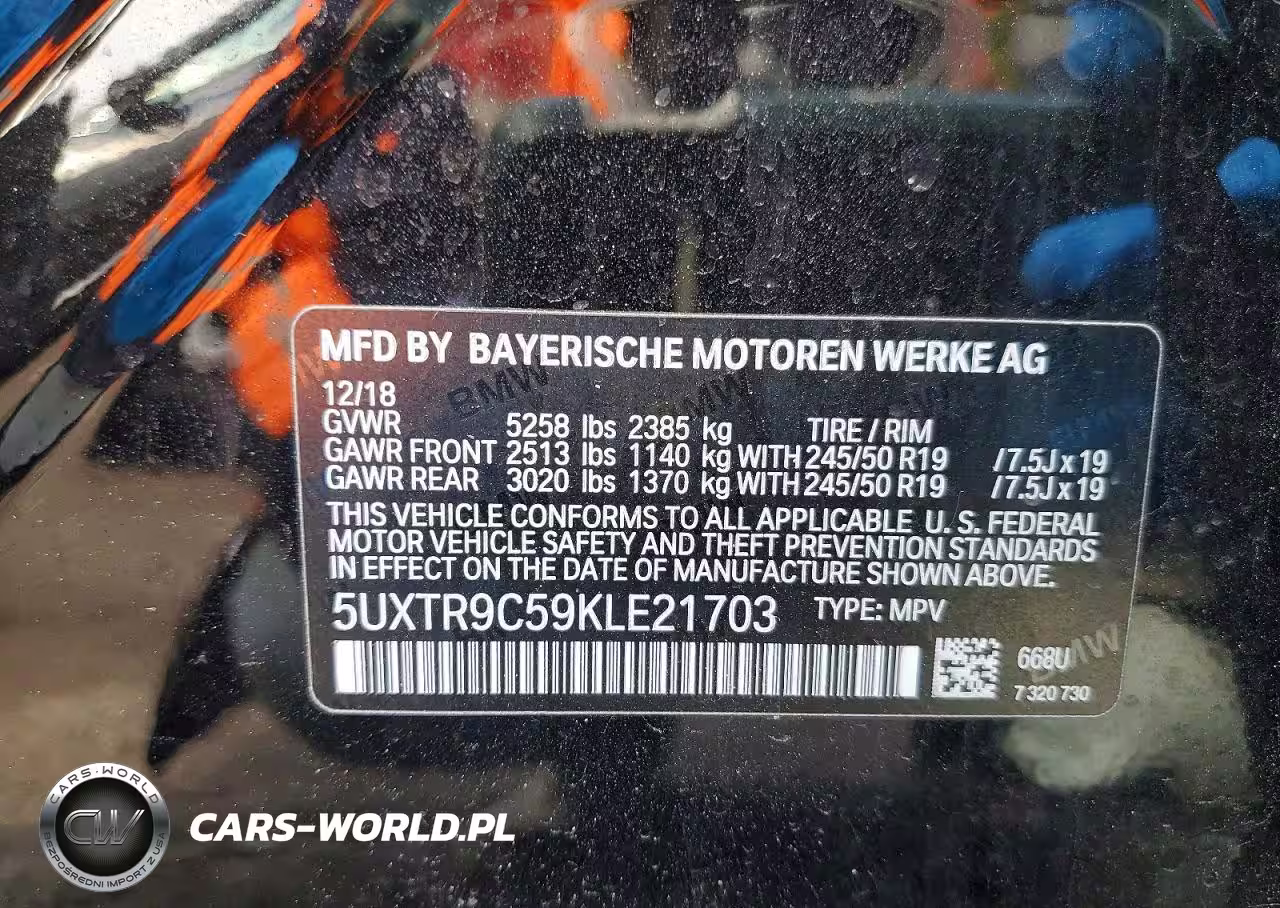 Copart Nr: C-47352296 VIN: 5UXTR9C59KLE21703 Port: Elizabeth, NJ