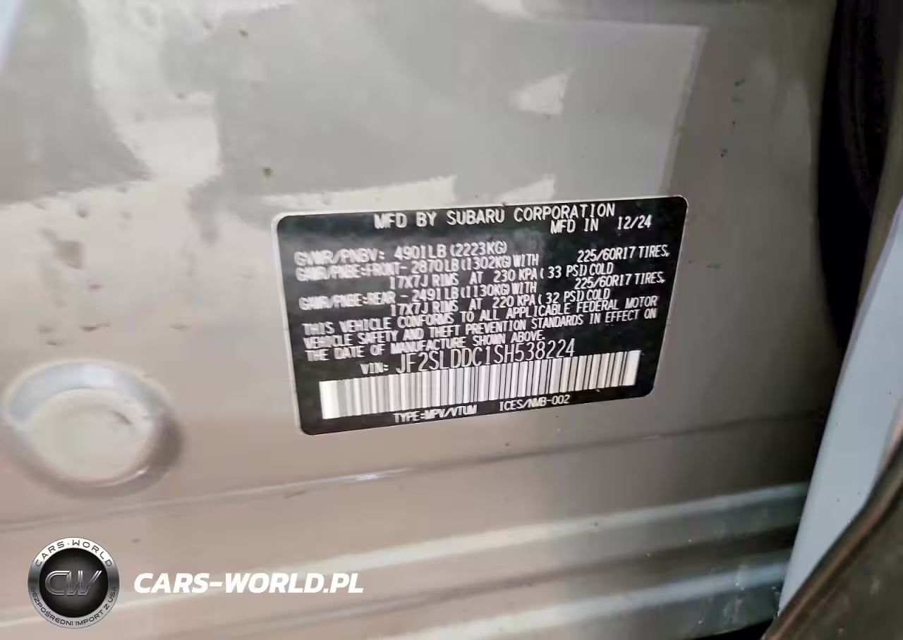 Copart Nr: C-47354816 VIN: JF2SLDDC1SH538224 Port: Indianapolis, IN