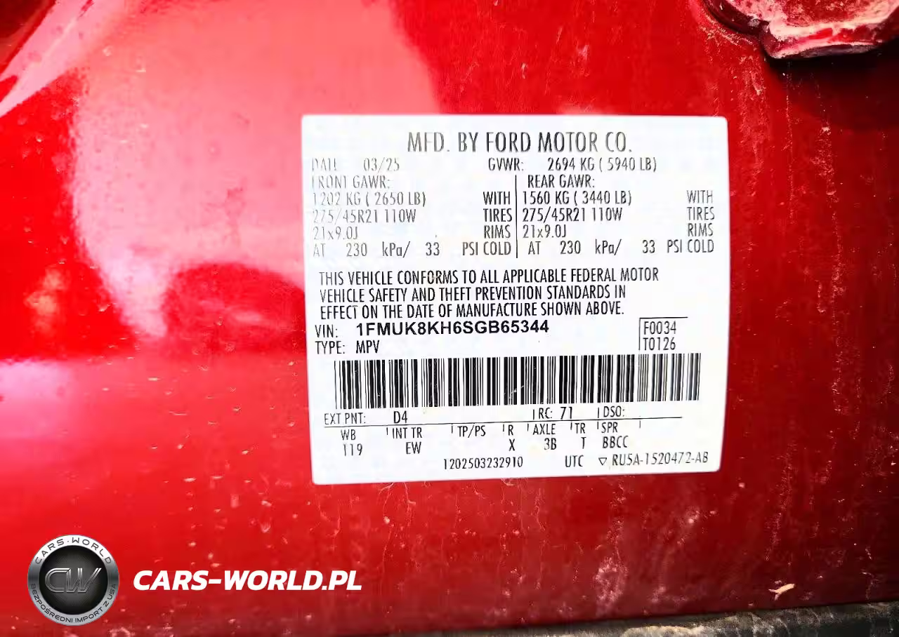 Copart Nr: C-47360136 VIN: 1FMUK8KH6SGB65344 Port: Elizabeth, NJ
