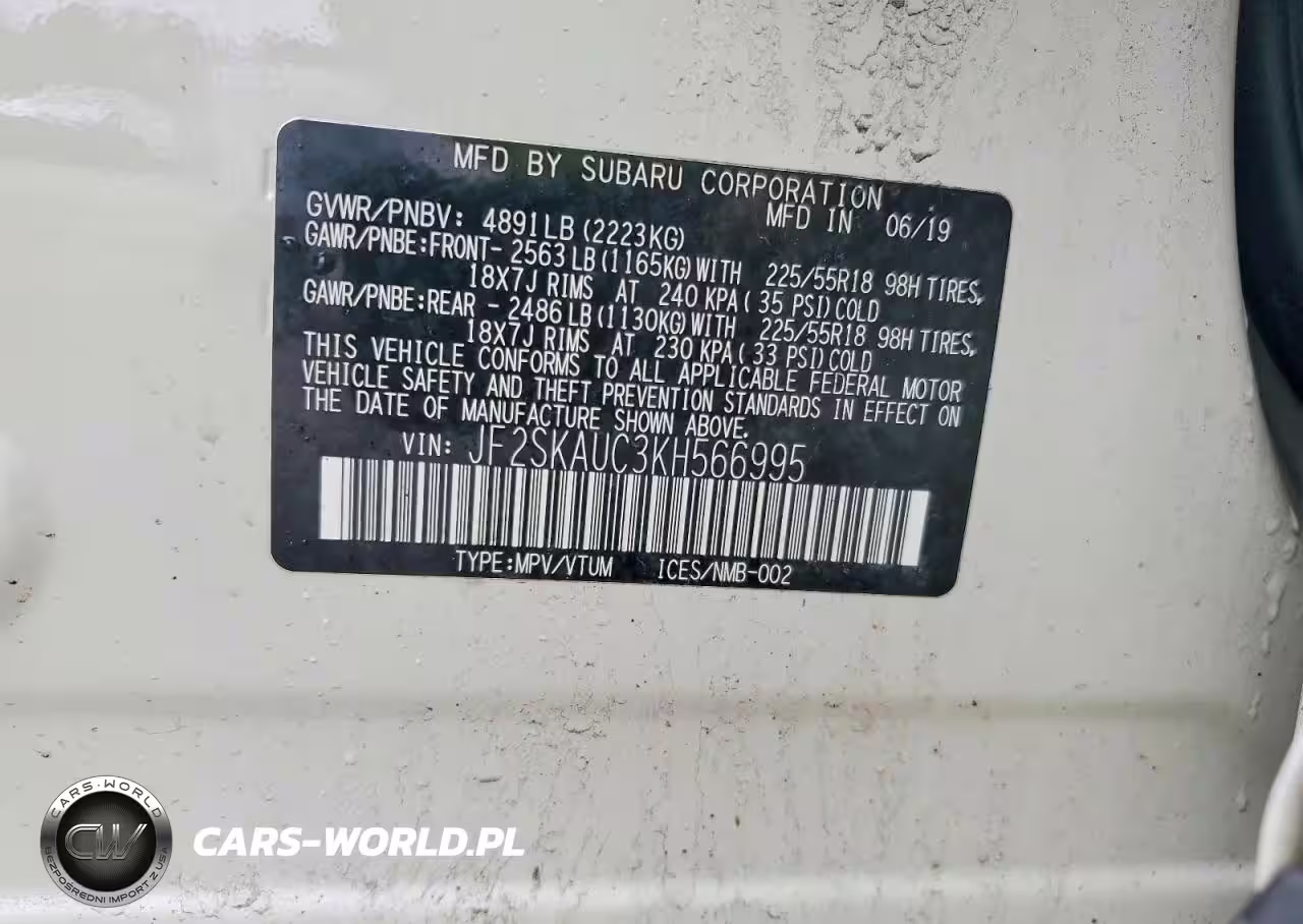 Copart Nr: C-47379826 VIN: JF2SKAUC3KH566995 Port: Elizabeth, NJ