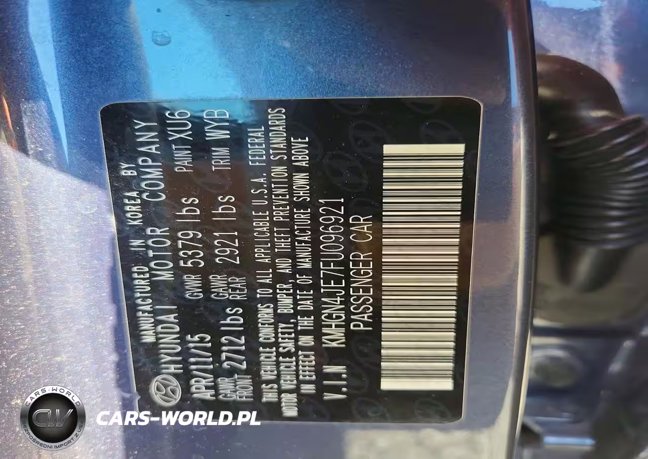 Copart Nr: C-47395256 VIN: KMHGN4JE7FU096921 Port: Savannah, GA