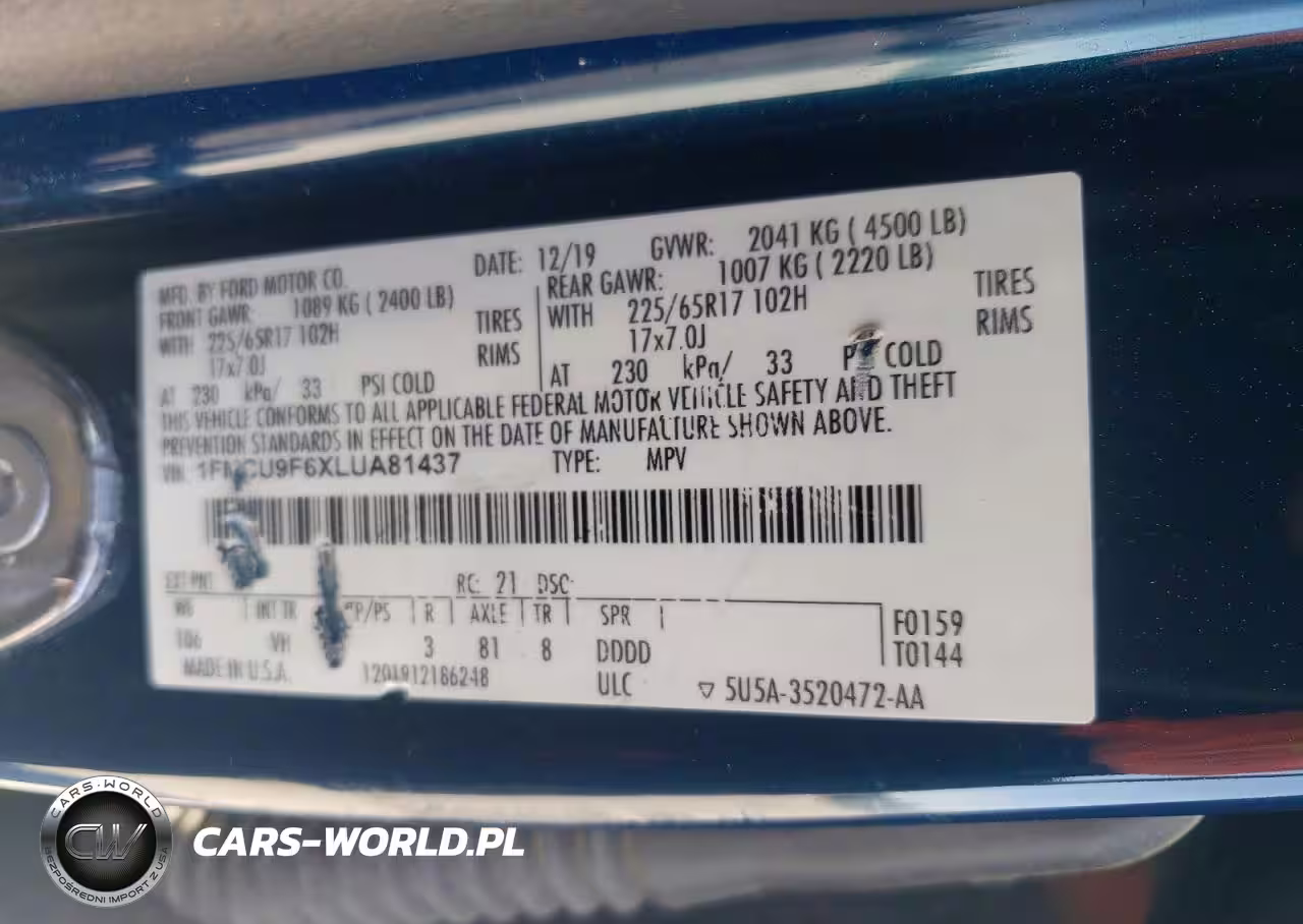 Copart Nr: C-47413486 VIN: 1FMCU9F6XLUA81437 Port: Savannah, GA