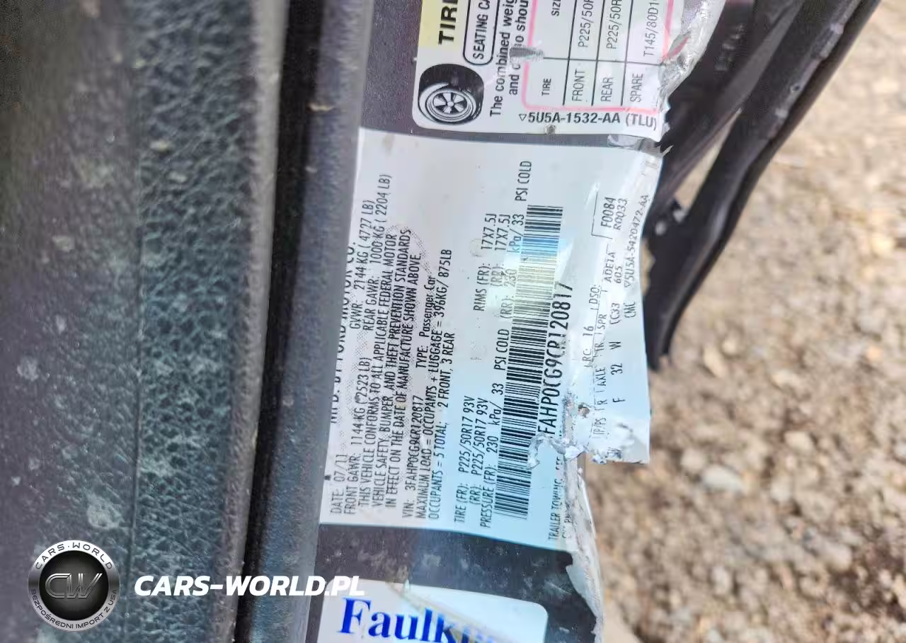 Copart Nr: C-47414356 VIN: 3FAHP0CG9CR120817 Port: Elizabeth, NJ