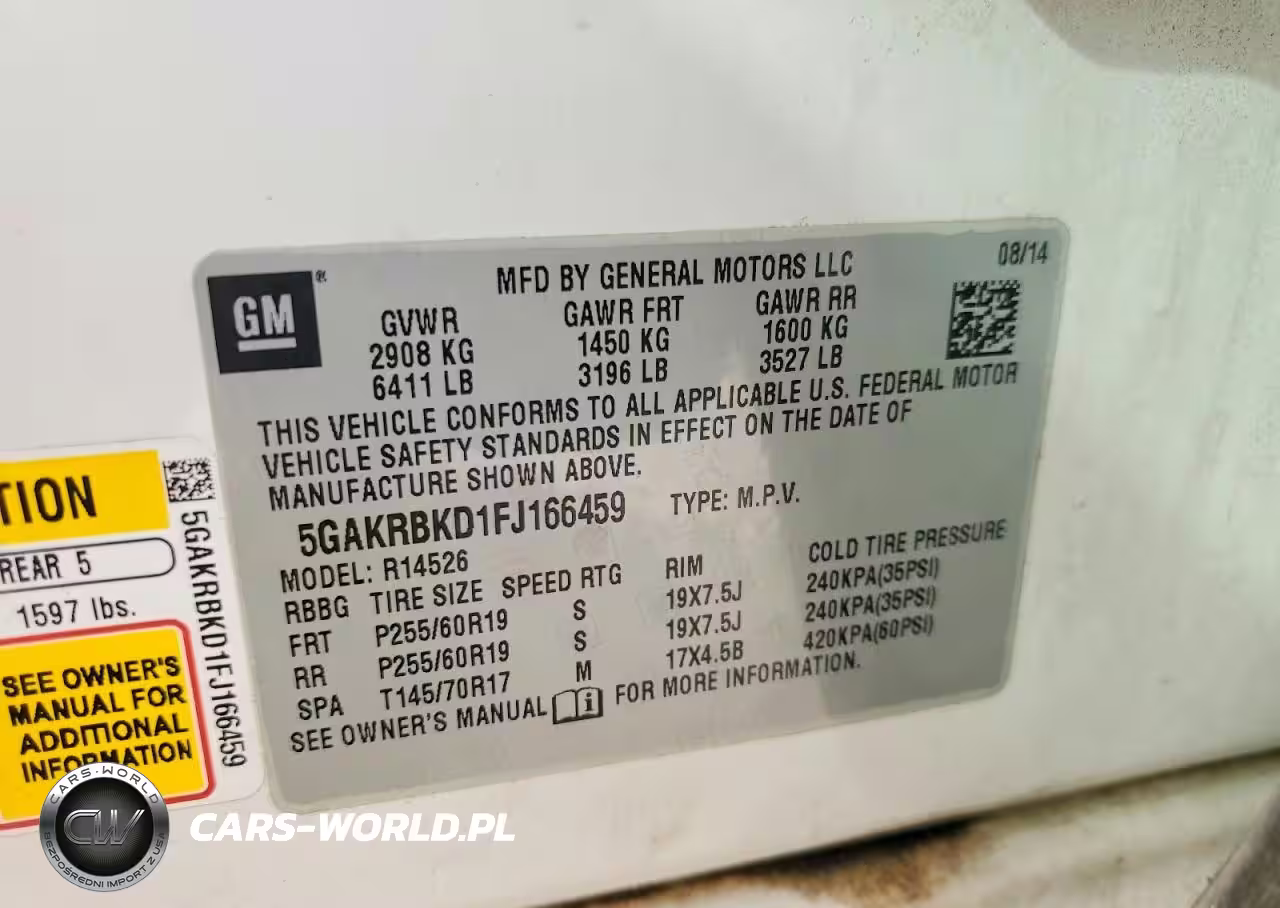 Copart Nr: C-47418526 VIN: 5GAKRBKD1FJ166459 Port: Houston, TX