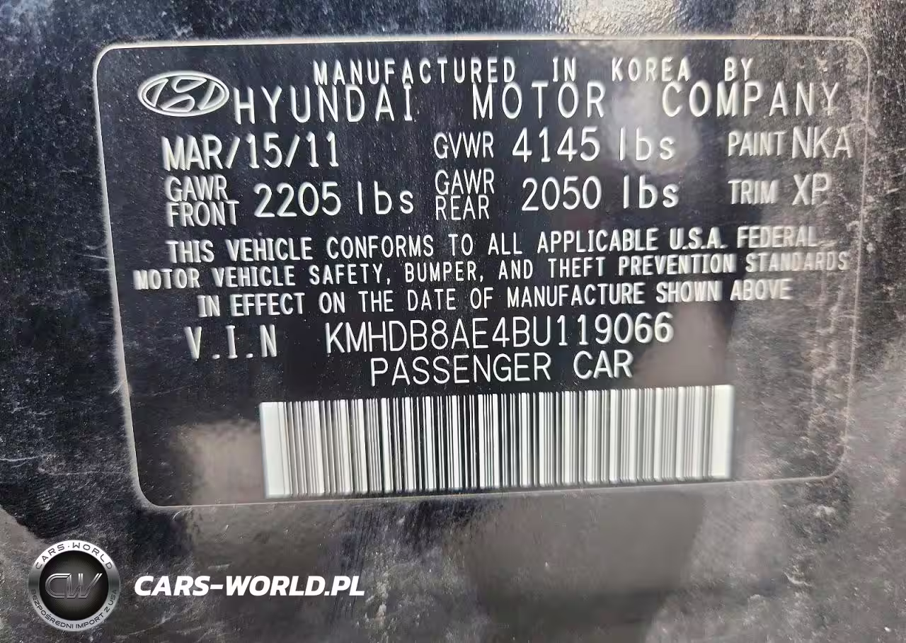 Copart Nr: C-47422136 VIN: KMHDB8AE4BU119066 Port: Los Angeles, CA