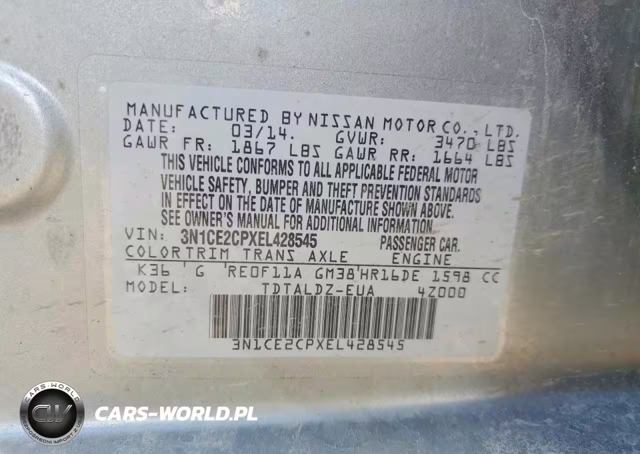 Copart Nr: C-47423726 VIN: 3N1CE2CPXEL428545 Port: Elizabeth, NJ