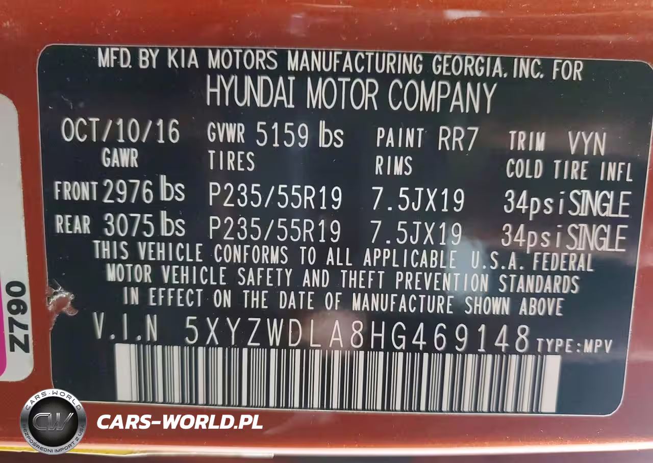 Copart Nr: C-47436786 VIN: 5XYZWDLA8HG469148 Port: Indianapolis, IN