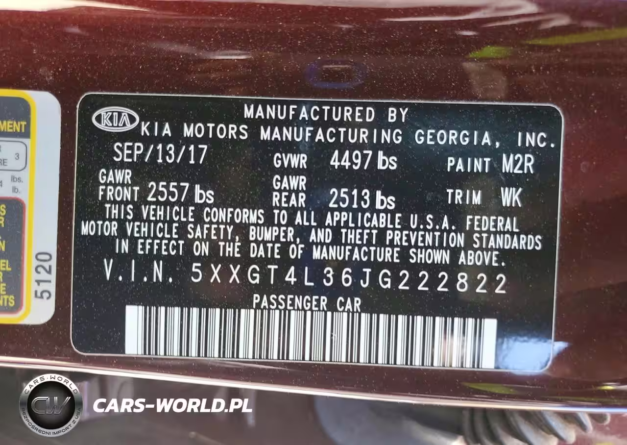 Copart Nr: C-47437576 VIN: 5XXGT4L36JG222822 Port: Savannah, GA