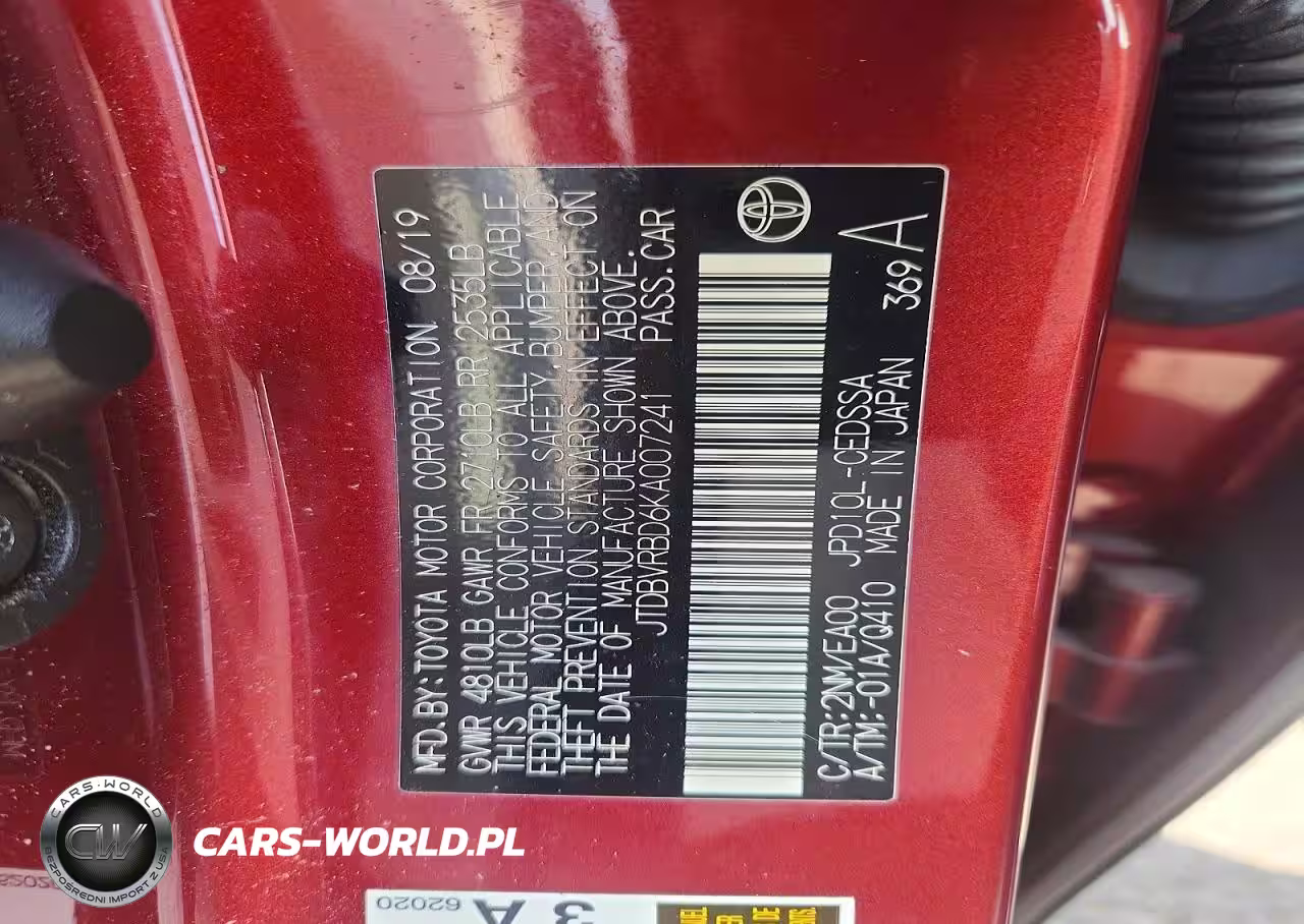 Copart Nr: C-47457146 VIN: JTDBVRBD6KA007241 Port: Los Angeles, CA