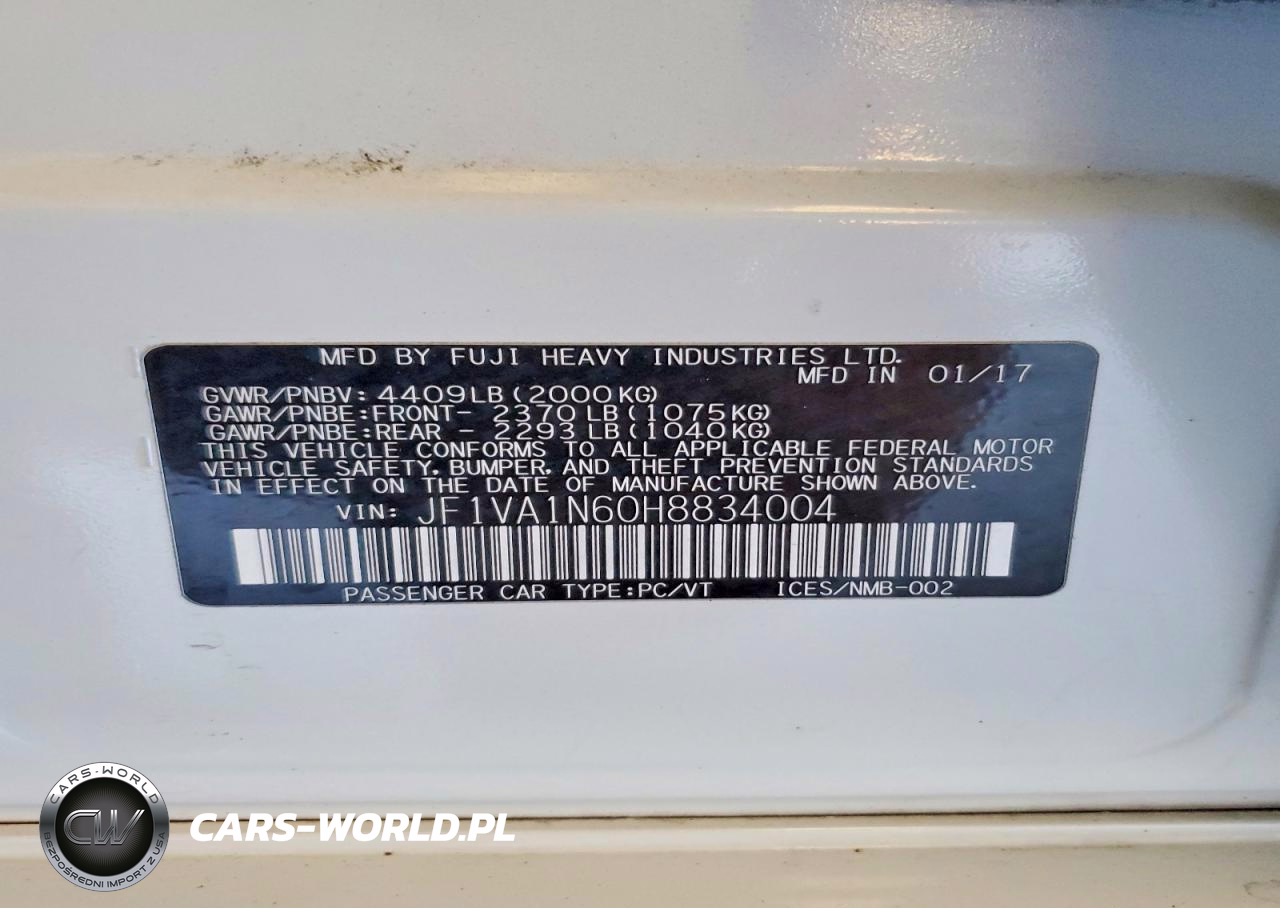Copart Nr: C-47469706 VIN: JF1VA1N60H8834004 Port: Los Angeles, CA