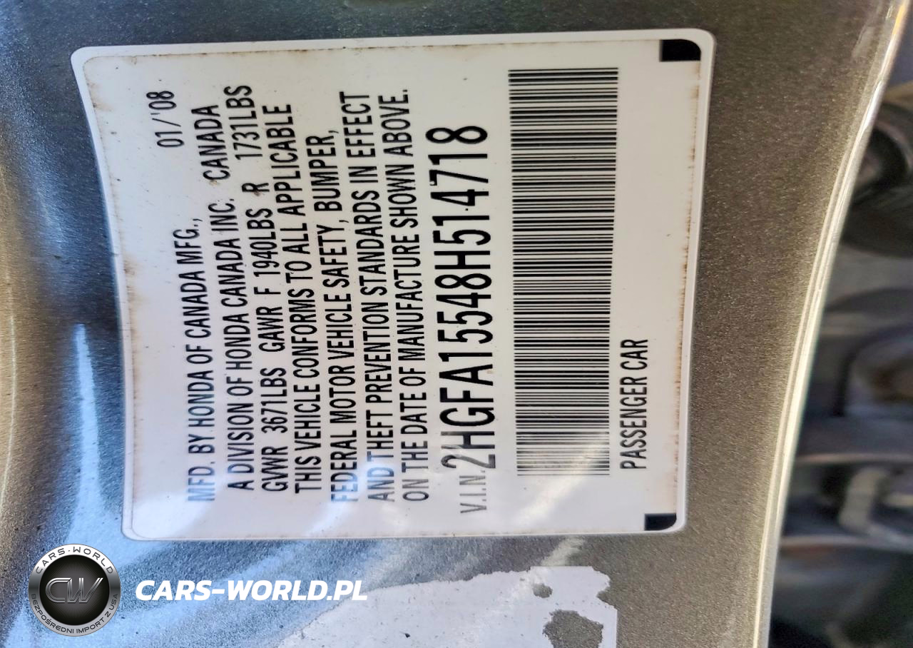 Copart Nr: C-47474186 VIN: 2HGFA15548H514718 Port: Elizabeth, NJ