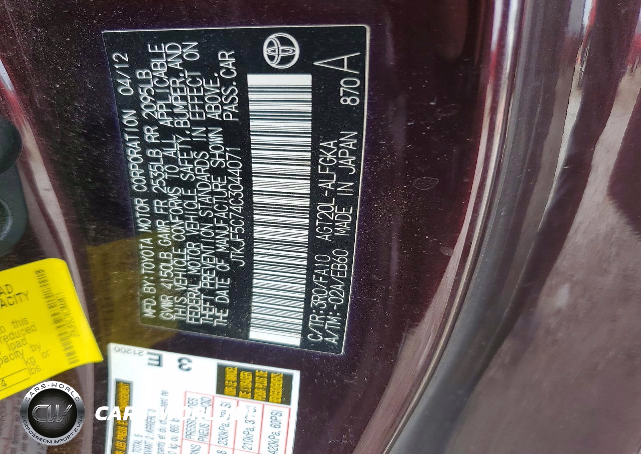 Copart Nr: C-47475876 VIN: JTKJF5C74C3044071 Port: Indianapolis, IN