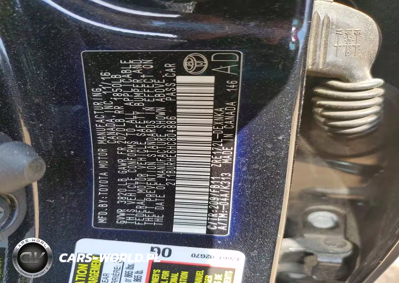 Copart Nr: C-47480986 VIN: 2T1BURHE6HC804886 Port: Savannah, GA
