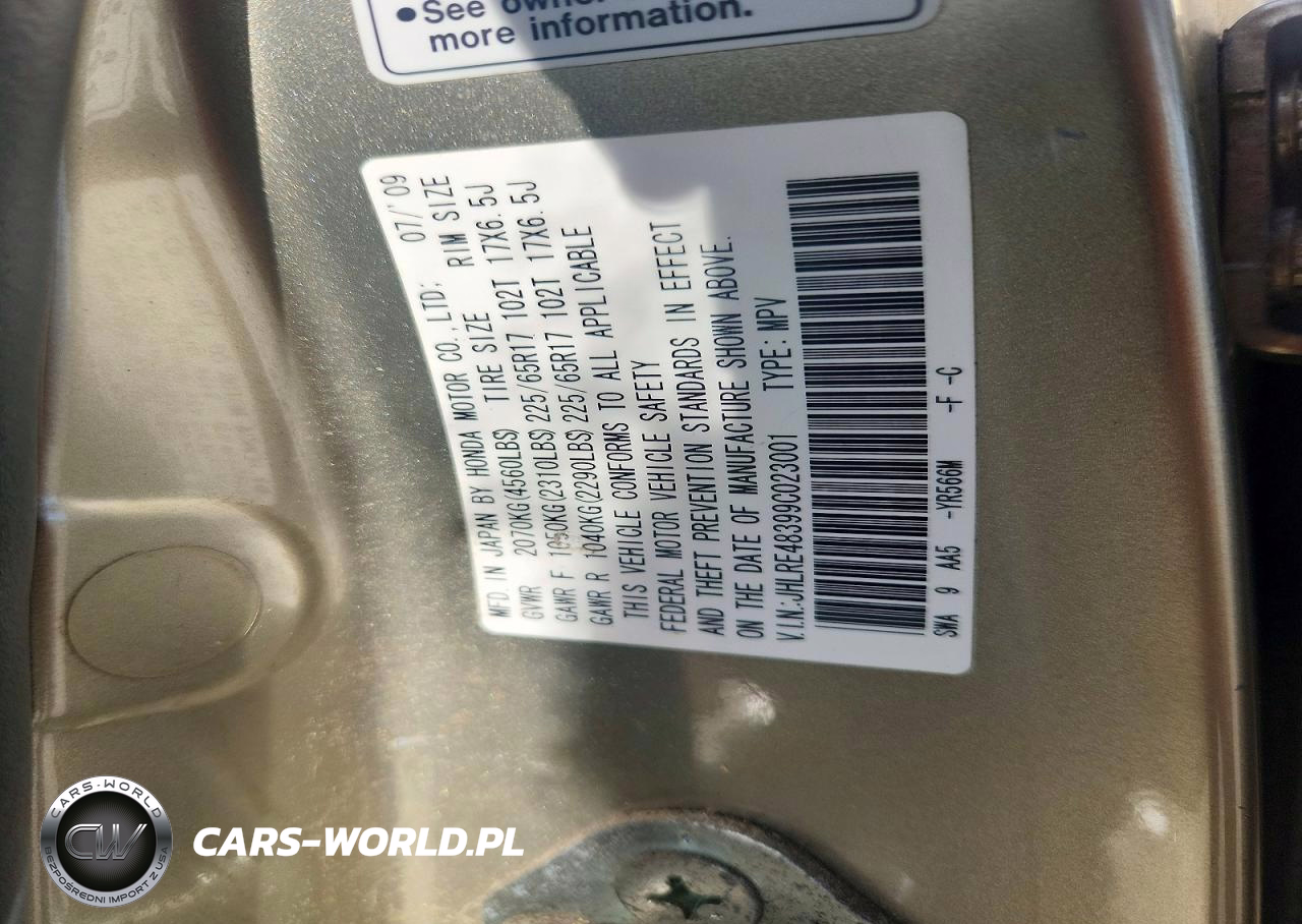 Copart Nr: C-47489146 VIN: JHLRE48399C023001 Port: Elizabeth, NJ