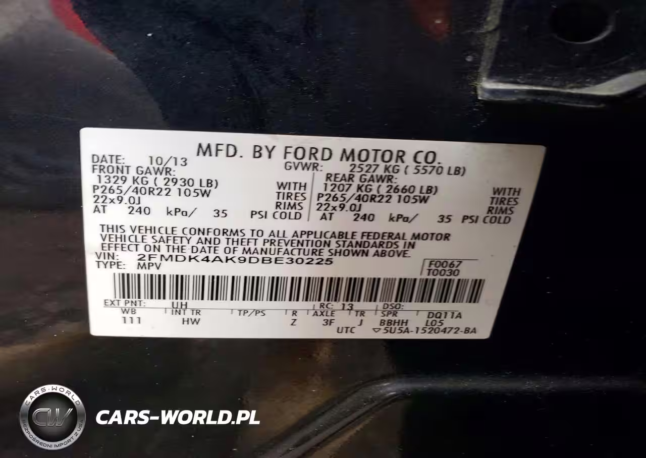 Copart Nr: C-47498616 VIN: 2FMDK4AK9DBE30225 Port: Elizabeth, NJ