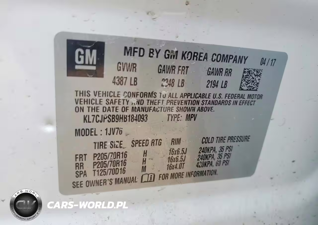 Copart Nr: C-47503206 VIN: KL7CJPSB9HB184093 Port: Indianapolis, IN