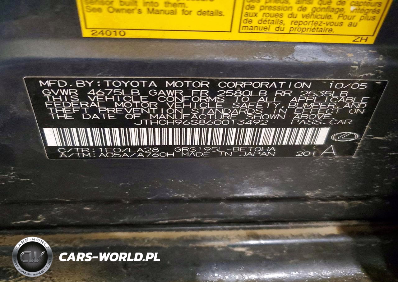 Copart Nr: C-47509796 VIN: JTHCH96S860013492 Port: Indianapolis, IN
