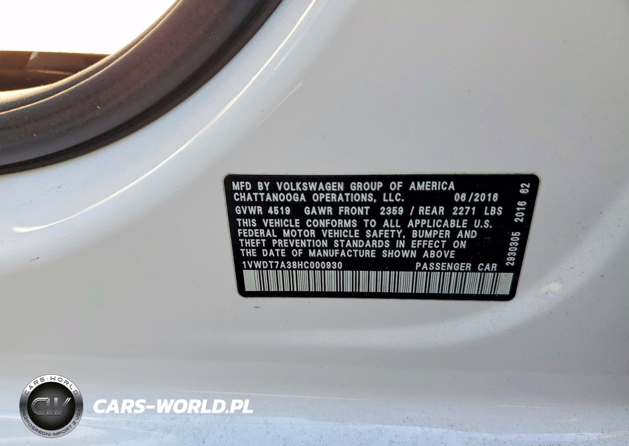 Copart Nr: C-47512956 VIN: 1VWDT7A38HC000930 Port: Savannah, GA