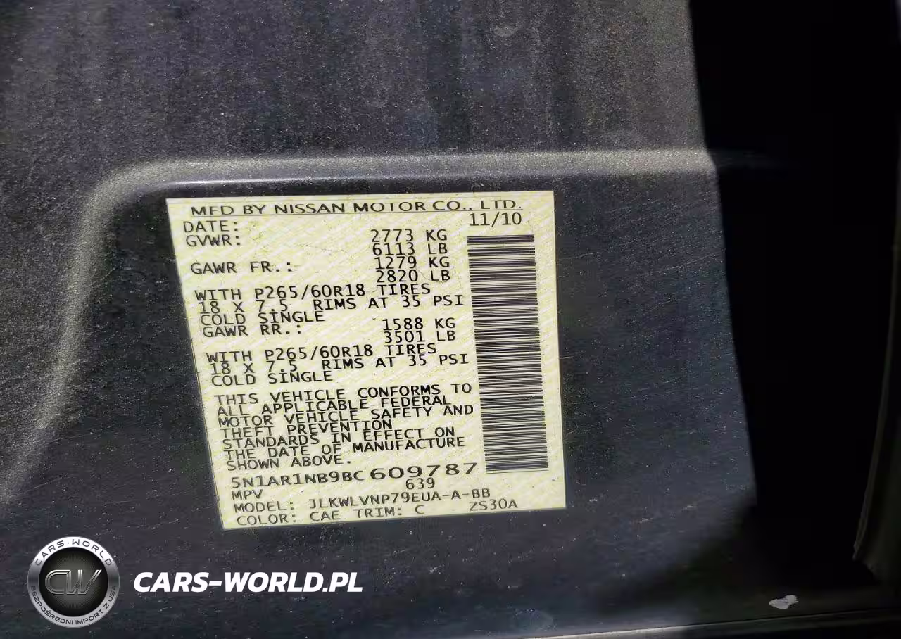 Copart Nr: C-47532836 VIN: 5N1AR1NB9BC609787 Port: Elizabeth, NJ