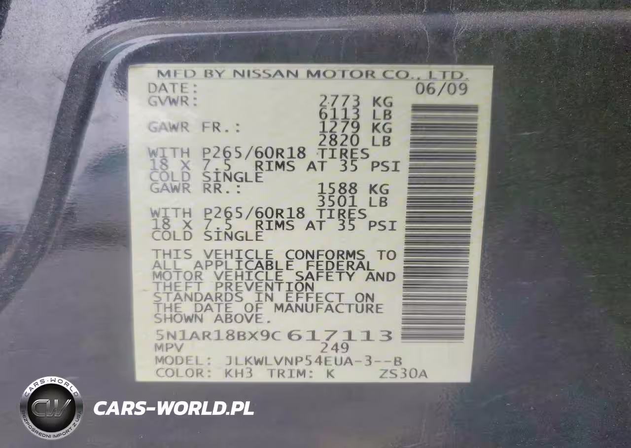 Copart Nr: C-47533806 VIN: 5N1AR18BX9C617113 Port: Indianapolis, IN