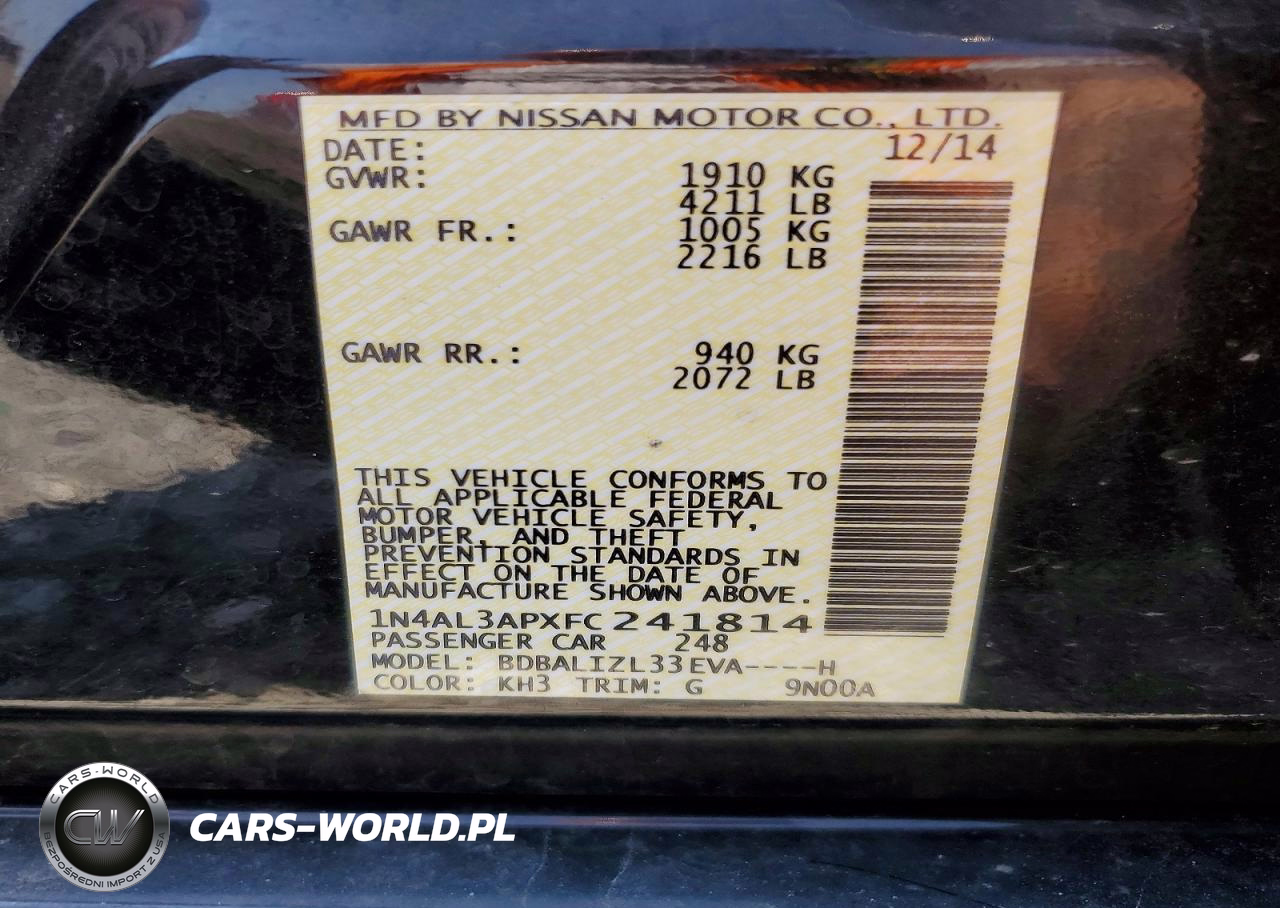 Copart Nr: C-47545966 VIN: 1N4AL3APXFC241814 Port: Indianapolis, IN