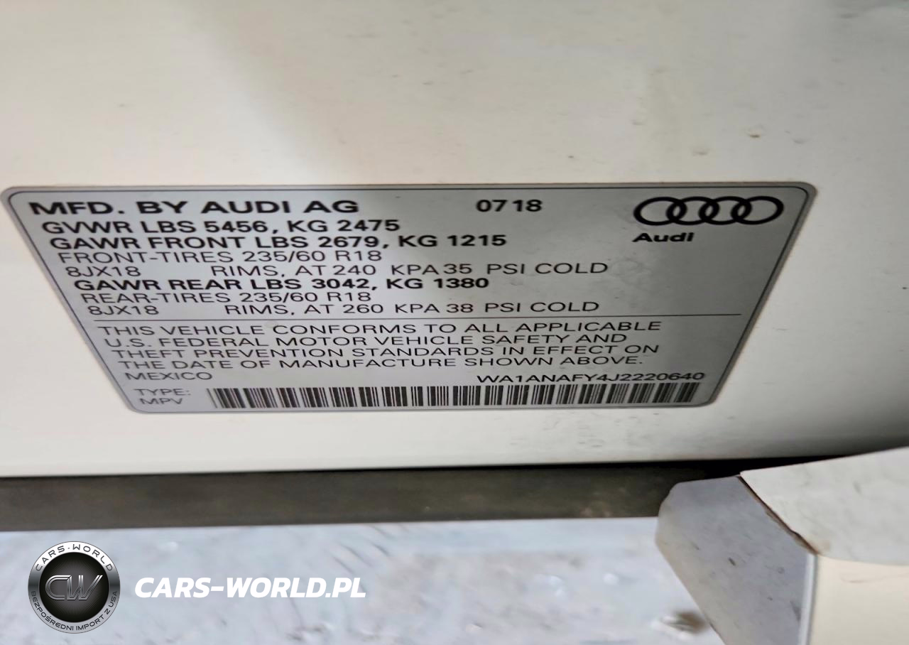 Copart Nr: C-47551646 VIN: WA1ANAFY4J2220640 Port: Los Angeles, CA