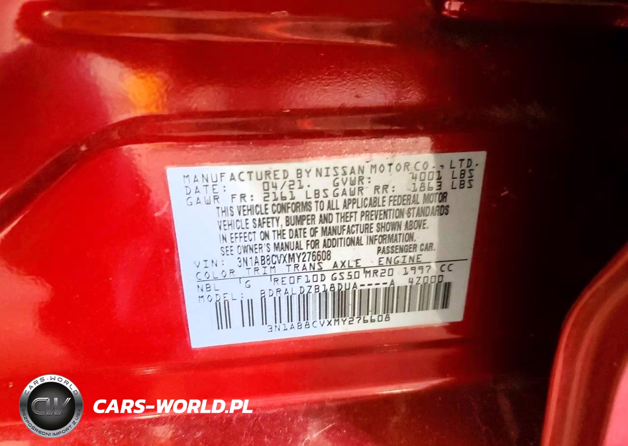 Copart Nr: C-47555586 VIN: 3N1AB8CVXMY276608 Port: Elizabeth, NJ