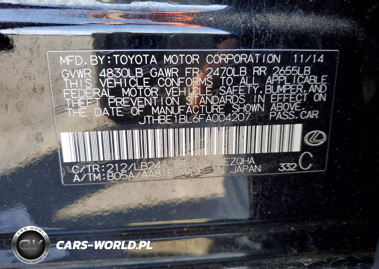 Copart Nr: C-47587536 VIN: JTHBE1BL6FA004207 Port: Los Angeles, CA