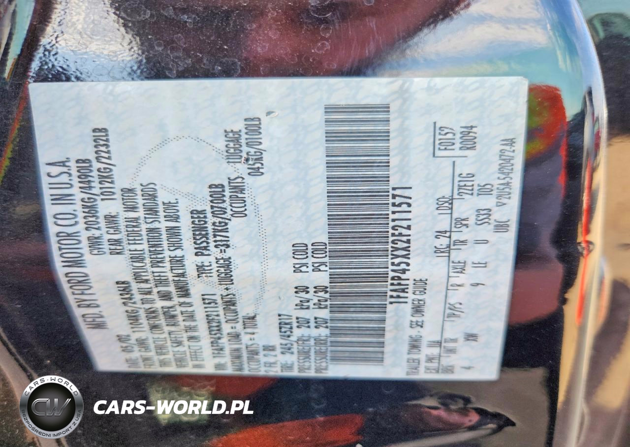 Copart Nr: C-47591616 VIN: 1FAFP45XX2F211571 Port: Indianapolis, IN