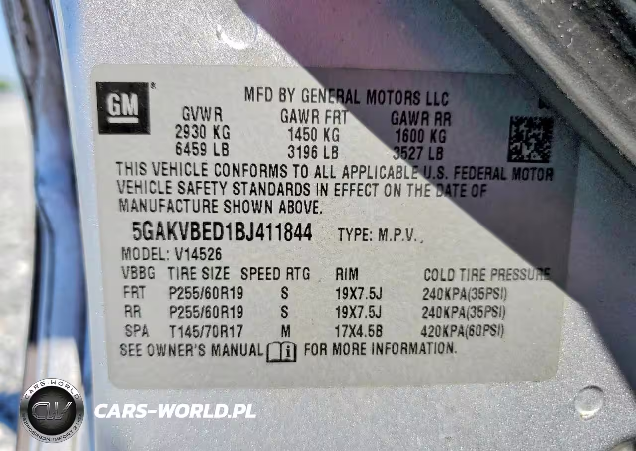 Copart Nr: C-47600846 VIN: 5GAKVBED1BJ411844 Port: Savannah, GA