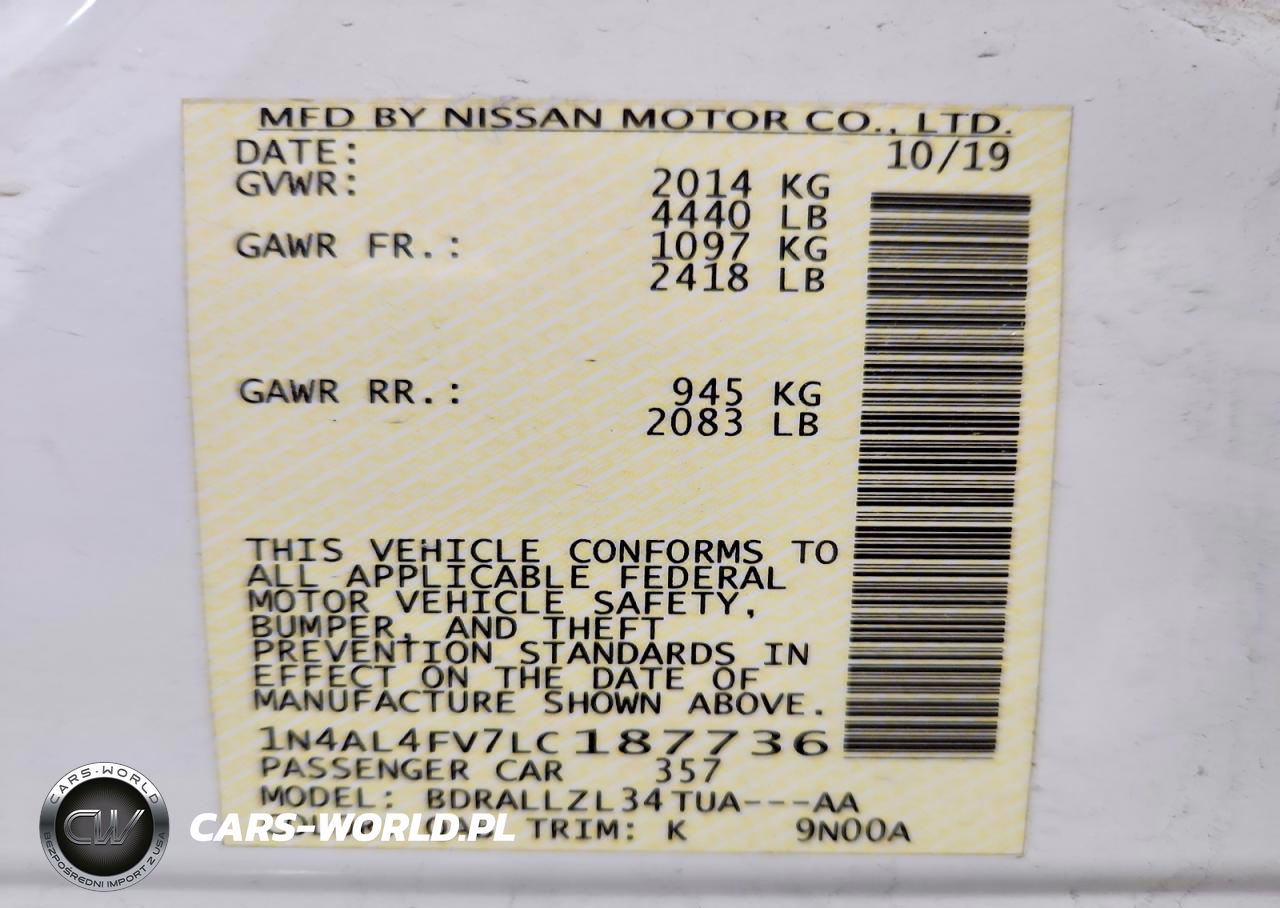 Copart Nr: C-47615836 VIN: 1N4AL4FV7LC187736 Port: Elizabeth, NJ