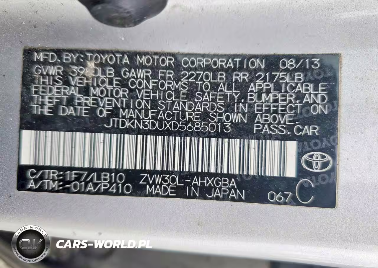 Copart Nr: C-47638756 VIN: JTDKN3DUXD5685013 Port: Los Angeles, CA