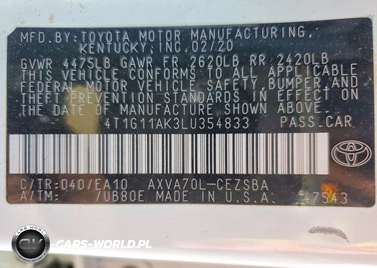 Copart Nr: C-47657666 VIN: 4T1G11AK3LU354833 Port: Elizabeth, NJ