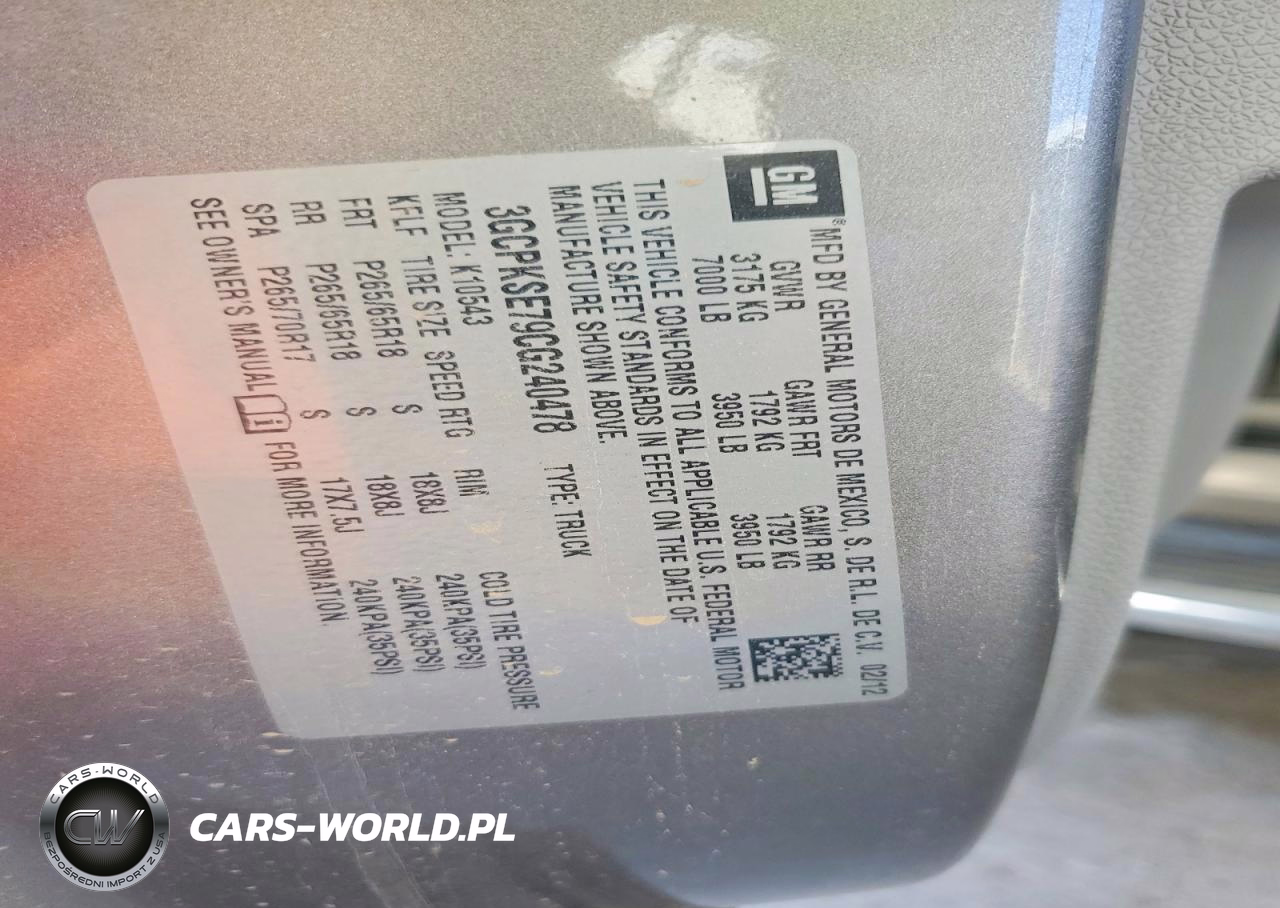Copart Nr: C-47658736 VIN: 3GCPKSE79CG240478 Port: Houston, TX