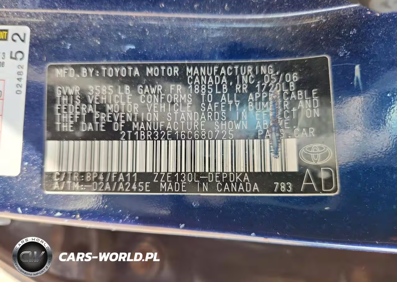 Copart Nr: C-47661816 VIN: 2T1BR32E16C680725 Port: Savannah, GA