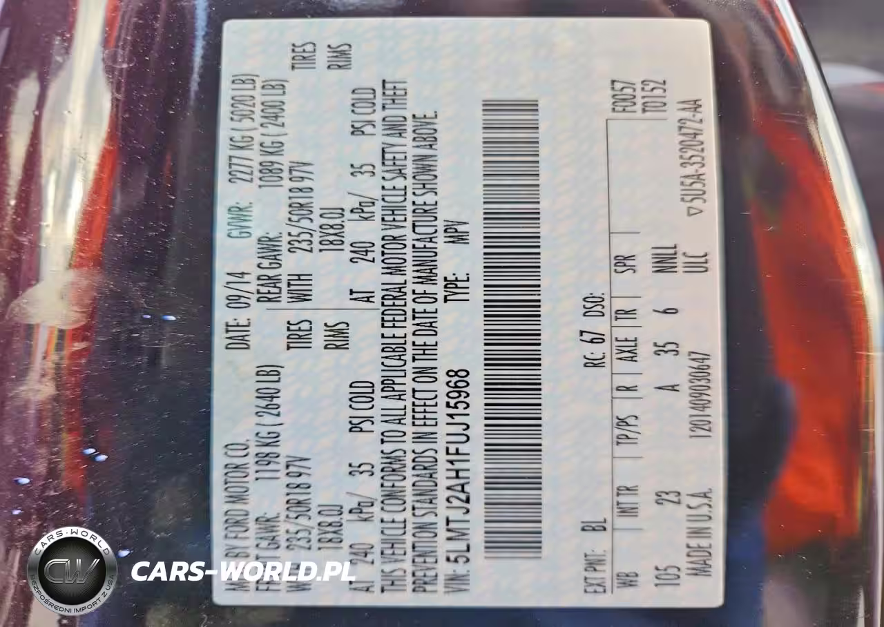Copart Nr: C-47702396 VIN: 5LMTJ2AH1FUJ15968 Port: Houston, TX