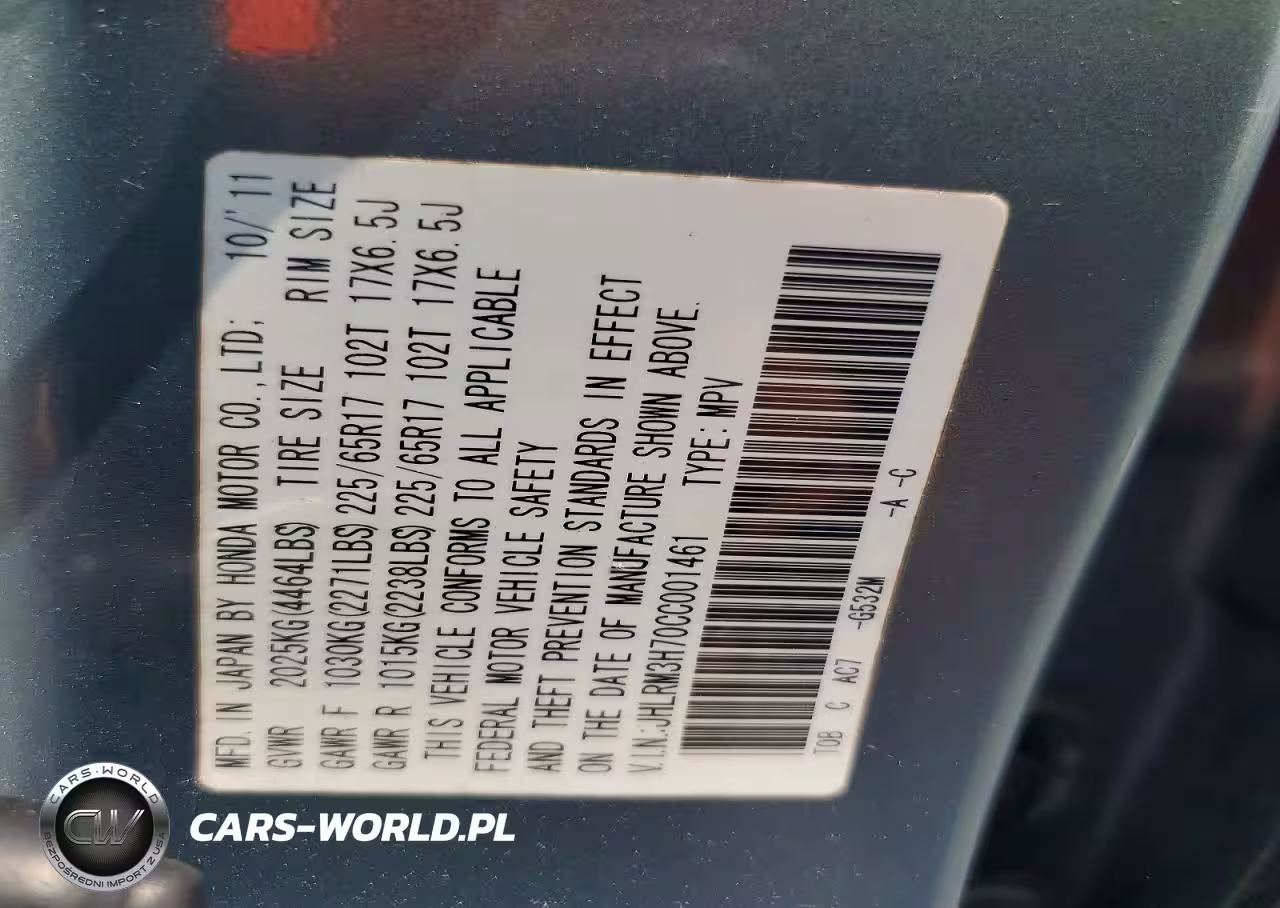 Copart Nr: C-47718416 VIN: JHLRM3H70CC001461 Port: Savannah, GA
