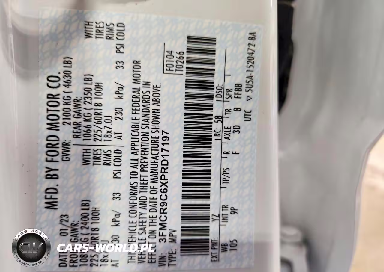 Copart Nr: C-47718646 VIN: 3FMCR9C6XPRD17197 Port: Indianapolis, IN